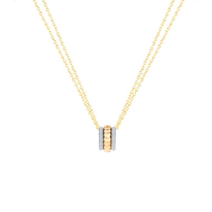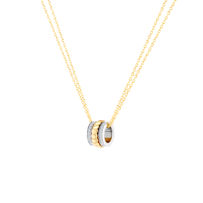 Luxe Band Charm Pendant featuring a sleek dual-tone design with textured gold and smooth white metal bands. A modern, minimalist piece that adds refined elegance and everyday sophistication.